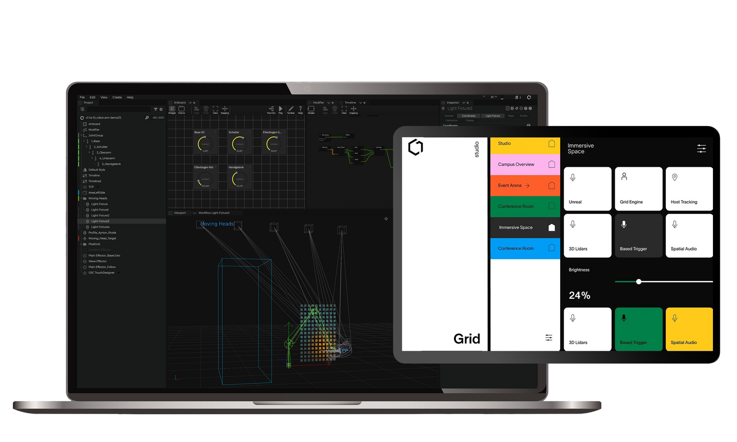 SP Grid Platform is designed to bring precision, flexibility, and control to the evolving experiential world. Whether you’re managing live events, immersive spaces, or virtual production stages, SP Grid’s product suite ensures seamless integration, calibration, control, and automation across devices, platforms, and environments.