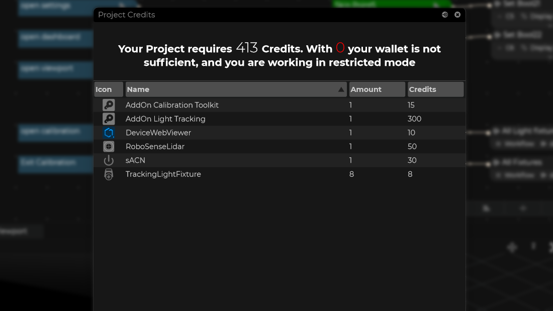 From a single credit for a Kinetic Winch connection, to 150 credits for a Camera Tracking I/O, the credits system scales with the projects requirements. Check out how it works in more detail.