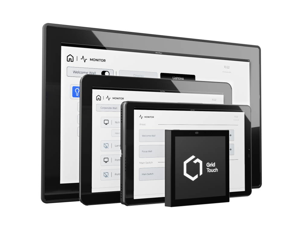 The Grid Touch range of Wall-Mount Surface panels are available from compact 4” quick access room controls to full 15” engineer dashboards.